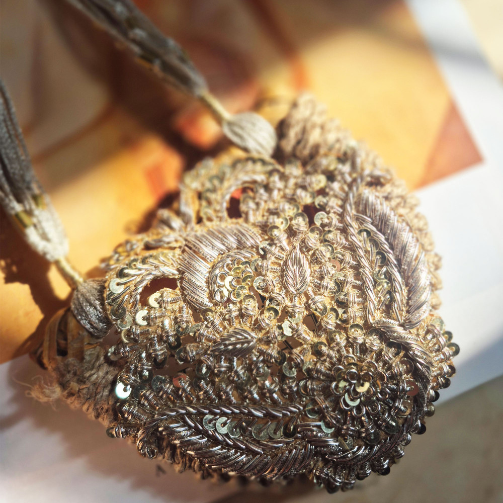The Anaya Necklace brings together the richness of traditional embroidery and the ease of modern design. Handcrafted using intricate silver-toned zardozi, metal wire, and sequin embroidery on a sculptural fabric base, Anaya reflects the language of heirloom craft while remaining light and effortless to wear. Soft braided textile sides and layered thread ties allow for a comfortable, adjustable fit that sits beautifully on the body. Each piece is made slowly by hand, celebrating variation, texture, and the beauty of artisanal detail. Designed as a statement that works across occasions, Anaya pairs just as seamlessly with festive silhouettes as it does with understated, contemporary looks. Thoughtful, tactile, and made in limited quantities — Anaya is crafted to be worn and kept.